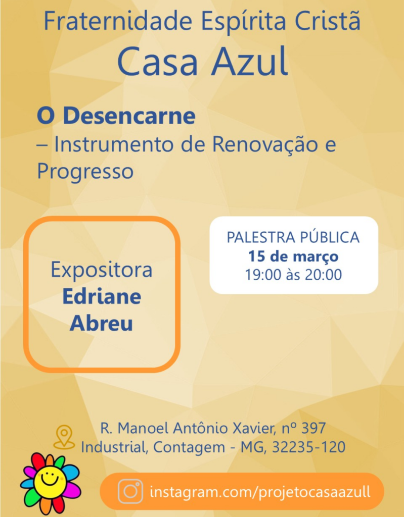 Haverá o estudo continuado do Livro dos Espíritos das 17:30 às 18:30.